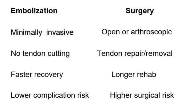 Golfer’s elbow embolization is a minimally invasive, image-guided procedure designed to treat chronic tendon pain by addressing its underlying cause—abnormal blood flow.