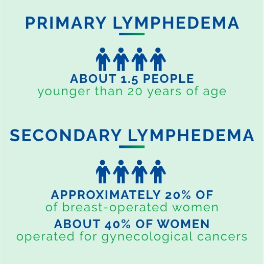 Secondary lymphedema is far more common and occurs when the lymphatic system is damaged after birth.